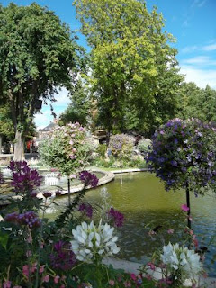 Mellan alla åkattraktioner fanns det fina lådor med blommor.Det syns att även här har det inte kommit mycket regn.
